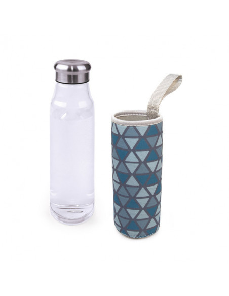 BOTELLA VIDRIO AZUL TRIANGULOS