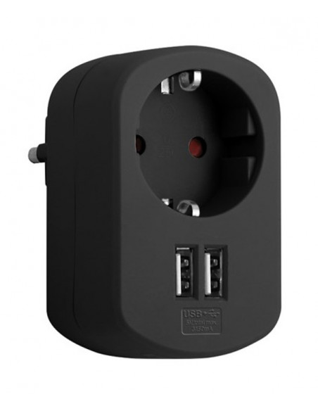 CLAVIJA ADAPTADOR 1T+2USB NEGR