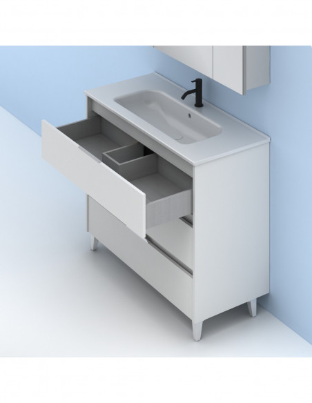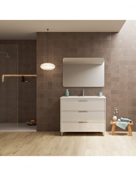 Mueble de baño SUKI de 100 cms con tres cajones. Acabado en Blanco Brillo. | Incluye lavabo cerámico.