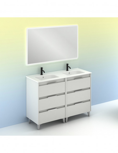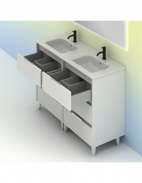 Mueble de baño SUKI de 120 cms con seis cajones. Acabado en Blanco Brillo. | Incluye lavabo cerámico.
