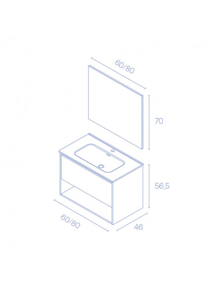 NIWA está DISPONIBLE EN VARIAS MEDIDAS 60 cms y 80 cms. Sencillez, elegancia, versatilidad… El mueble de baño NIWA es un conjunto compuesto por 2 elementos: 1 mueble con un cajón más un estante y lavabo cerámico de estilo minimalista. Una combinación perfecta para quienes quieran contar con un cuarto de baño acorde a las últimas tendencias.