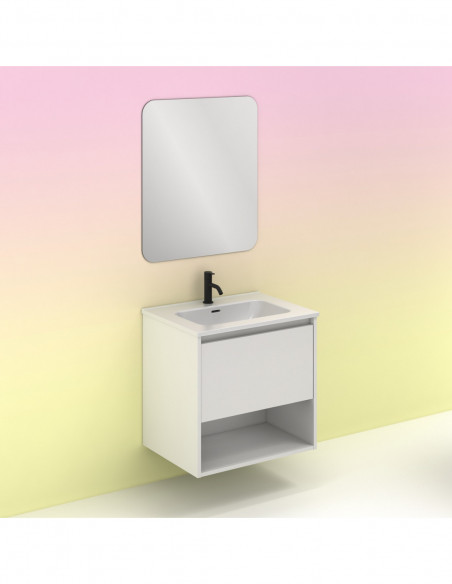 Mueble de baño NIWA de 60 cms con 1 cajón y 1 hueco. Acabado Blanco Brillo | Incluye lavabo cerámico .