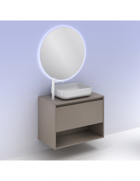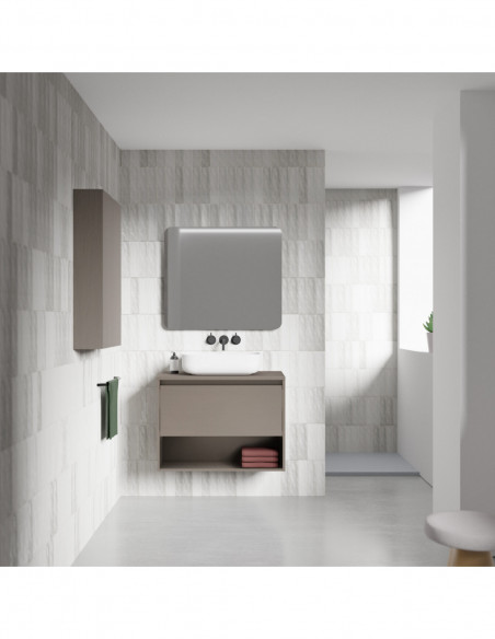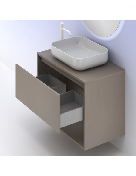 Mueble de baño NIWA TOP de 80 cms con 1 cajón y 1 hueco. Acabado Fumé Arenado | Incluye lavabo cerámico.