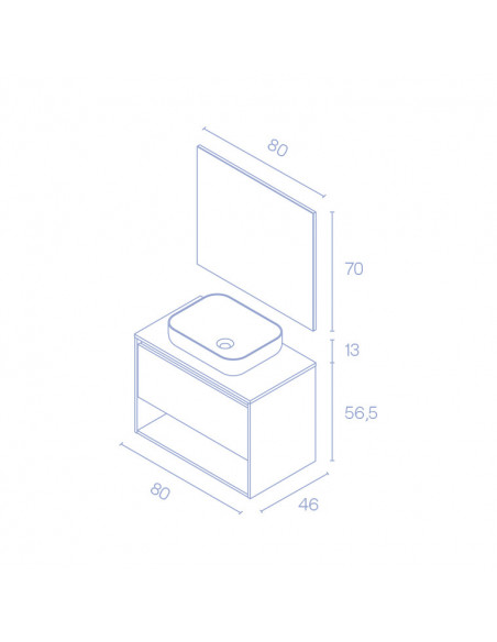 NIWA TOP está DISPONIBLE EN VARIAS MEDIDAS 60 cms y 80 cms. Sencillez, elegancia, versatilidad… El mueble de baño NIWA TOP es un conjunto compuesto por 3 elementos: 1 mueble con un cajón más un estante, encimera lacada con agujero para el lavabo y lavabo cerámico. Una combinación perfecta para quienes quieran contar con un cuarto de baño acorde a las últimas tendencias.