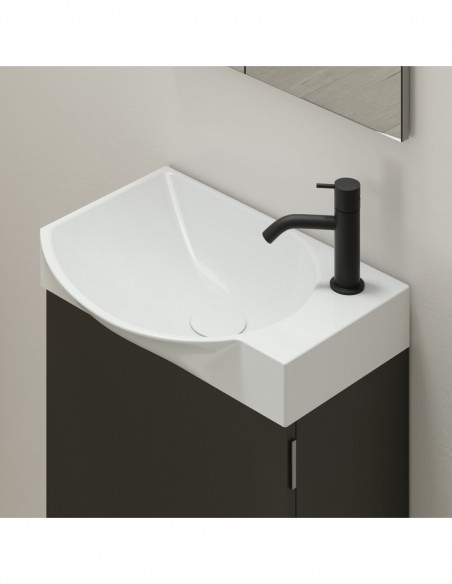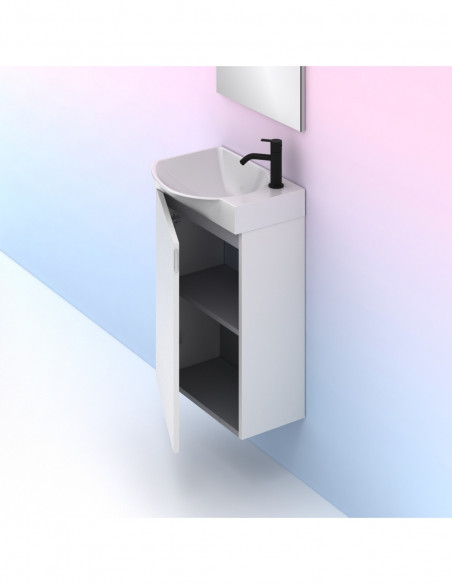 Mueble de baño MIKA. Blanco Brillo| Incluye lavabo cerámico y espejo.
