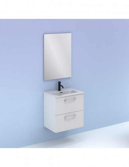Mueble de baño HONE. Blanco Brillo| Incluye lavabo cerámico y espejo.
